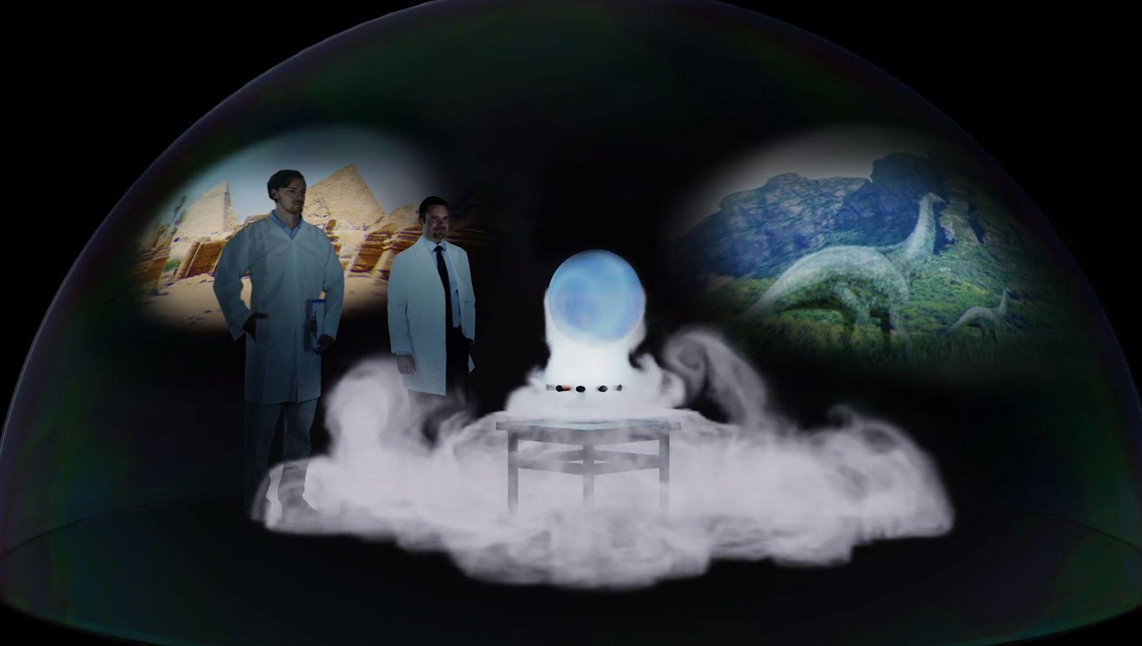 George: 彼らにはダイヤルのついた装置みたいなものがあって、「3015」などと入力すると、パッ!とその時代に姿を現すのですか?